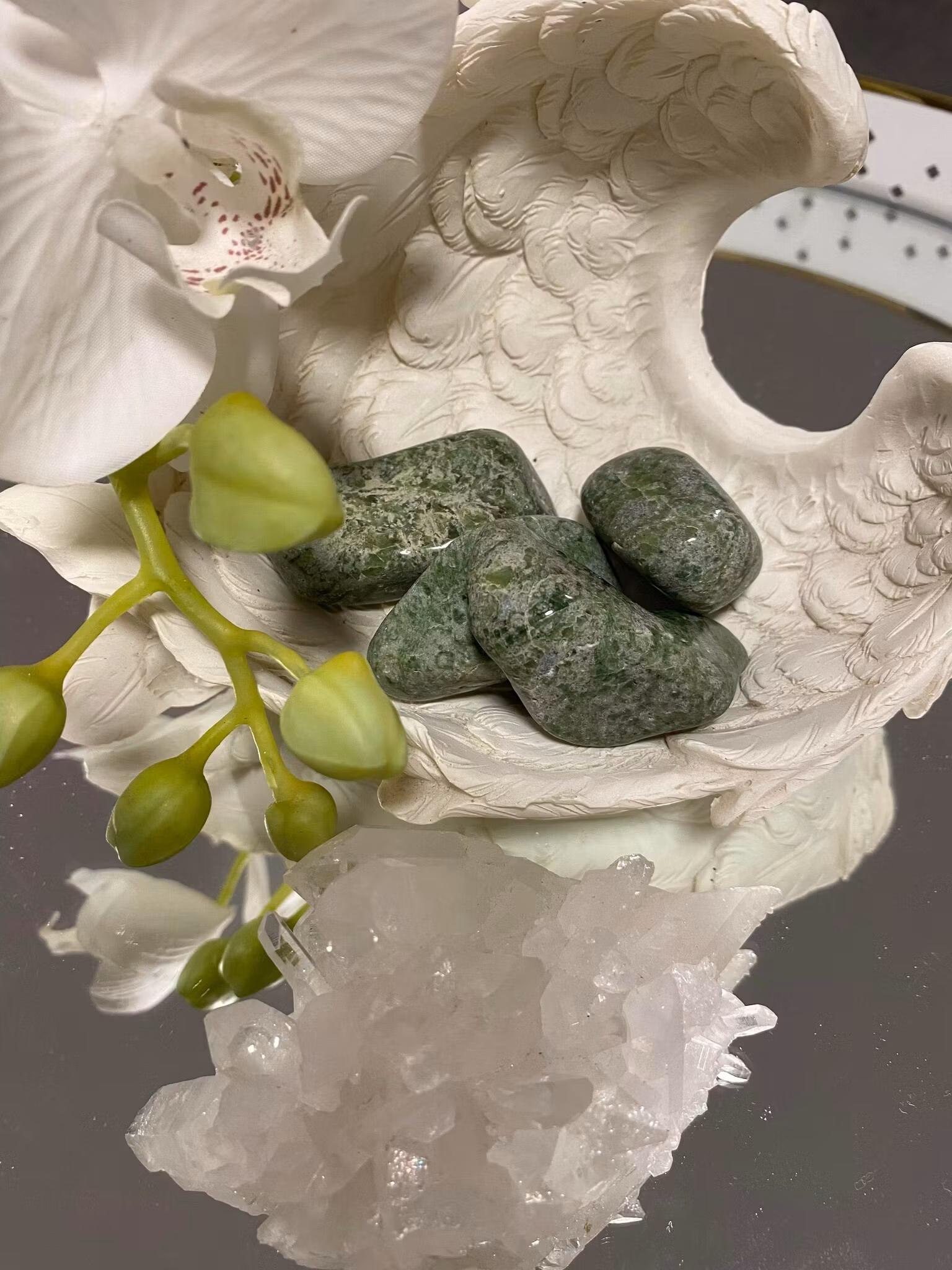 Idokras utgör en länk till ett högre jag och till den information detta ger från själen. Psykologiskt frigör den känslor av instängdhet och restriktioner. Den hjälper till att läka erfarenheter i tidigare liv av att vara fången, extrem fara och mental eller känslomässig instängdhet. Idokras eller Vesuvianit som den också heter hjälper till att försiktigt lösa upp vrede och mildra vår inre rädsla. Den sägs skapa en inre trygghet, öppnar vårt sinne och rensar bort negativa tankemönster så att sinnet kan fungera klarare. Den stimulerar uppfinningsrikedom och begäret att upptäcka, som den förenar med kreativiteten.