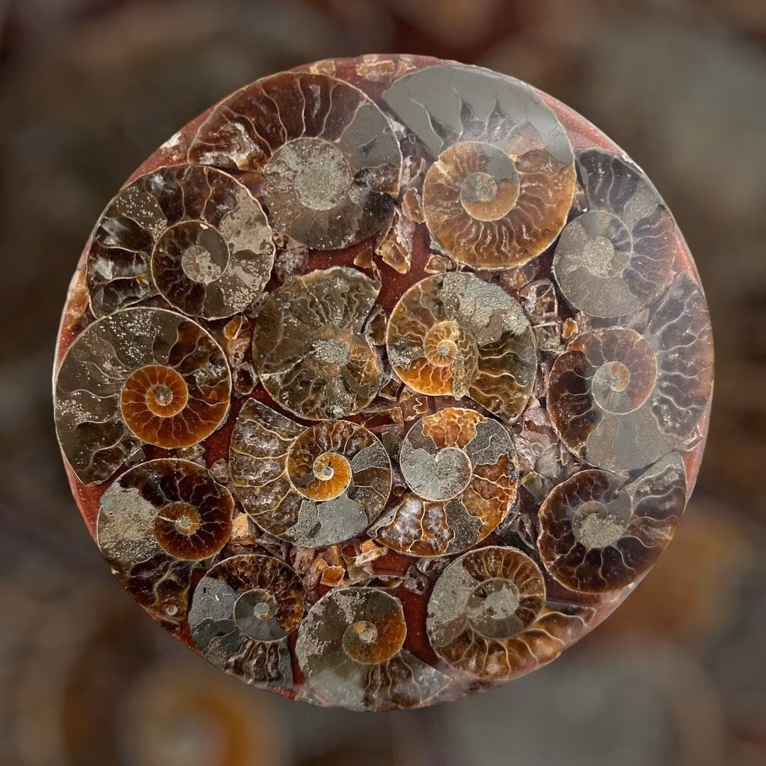 Denna fascinerande Ammonitplatta är en hyllning till jordens uråldriga skönhet och naturens underverk.