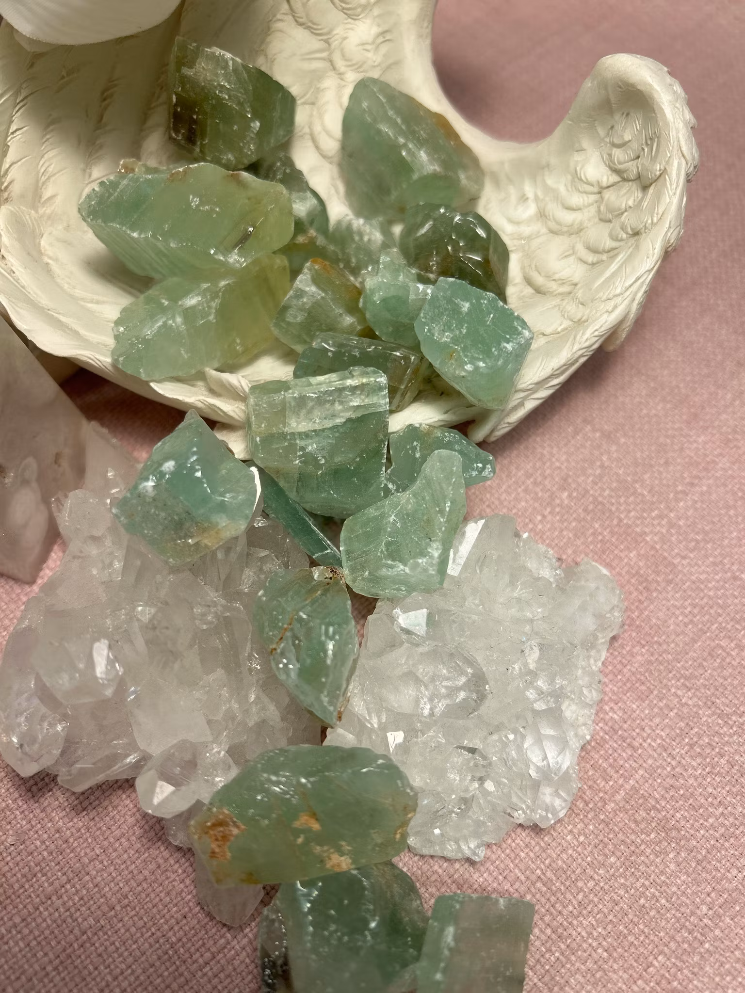 Programmera din Gröna Kalcit med dina högsta drömmar från hjärtat. Om du känner att tvivel kommer upp kan du lägga den på ditt hjärta och känna hur alla blockeringar absorberas in i kristallen. Känn hur du kommer tillbaka till tilliten till dig själv och Universum.