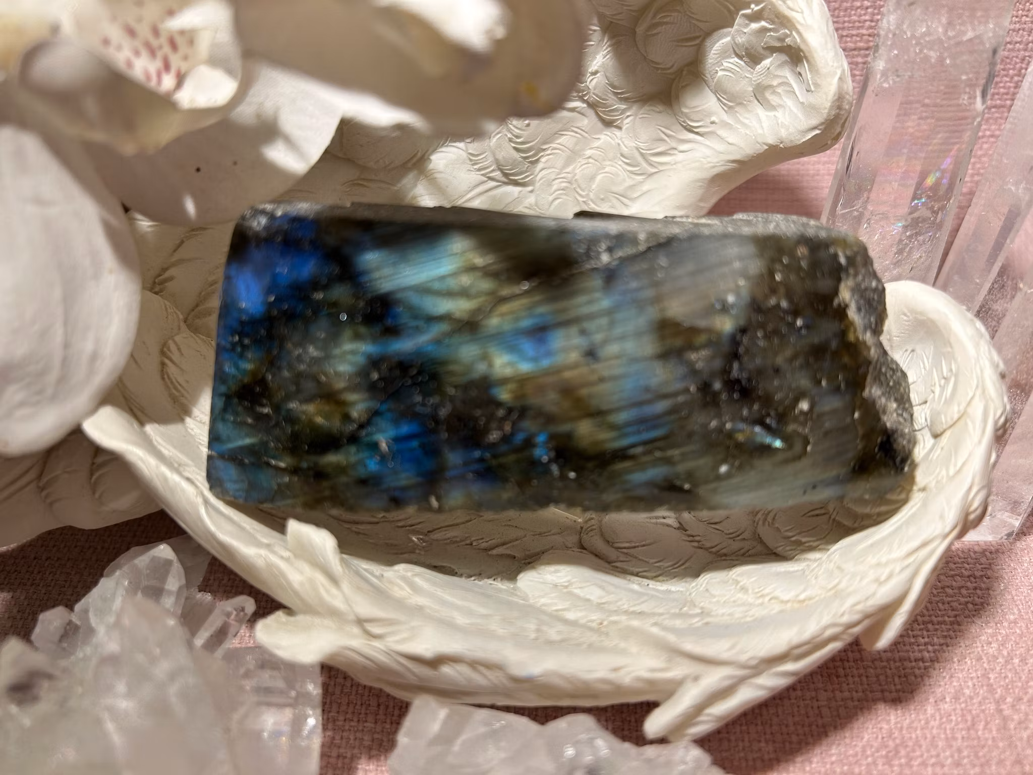 Labradoriten påminner dig om din gränslösa potential, att ständigt sträva efter att uppnå dina fullaste möjligheter. Det magiska färgspelet i stenen kallas labradorescens och ju mer du tittar på dess färger, desto mer upptäcker du. Labradoriten är en sten för transformation och livsöde och hjälper dig att erkänna dina styrkor på ett sätt du aldrig gjort tidigare. En ständig påminnelse om att det finns ingen gräns för vad du kan uppnå.