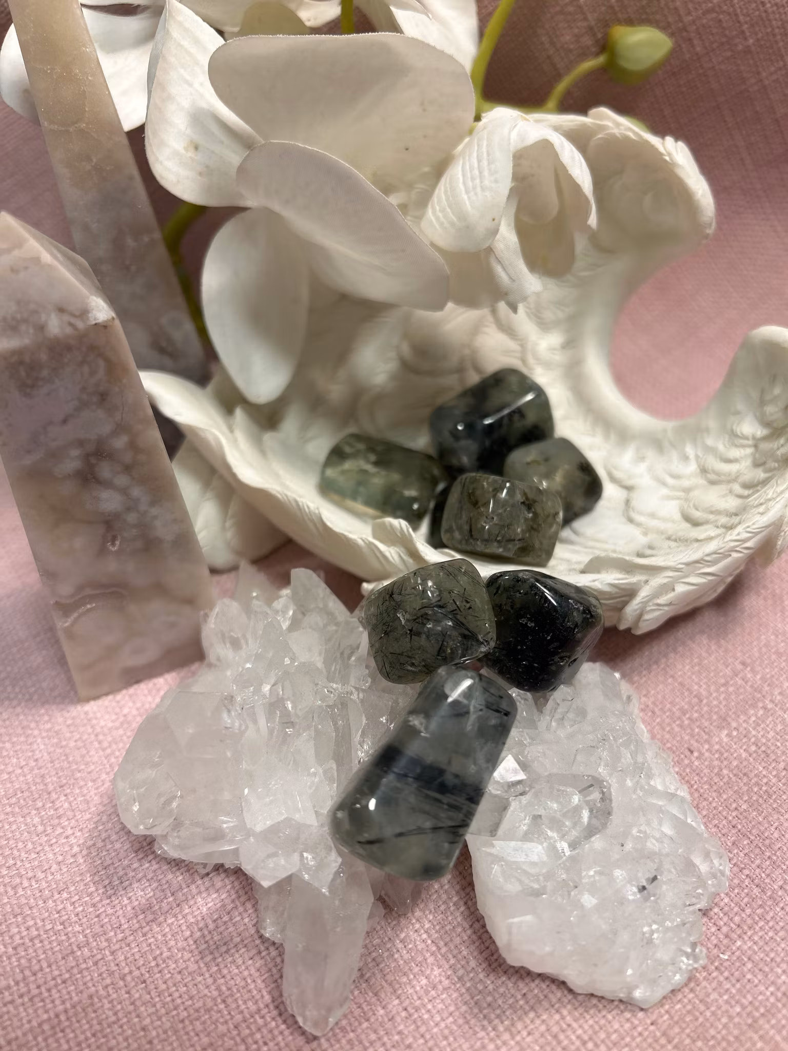 Prehnit är en sten för drömmande och kreativt tänkande. Den stärker meditation, avslappning och att ur djupet av sig själv plocka fram minnen eller insikter.