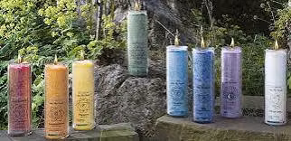 Varje ljus är försett med en symbol för det chakra som överensstämmer med dess färg.