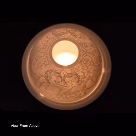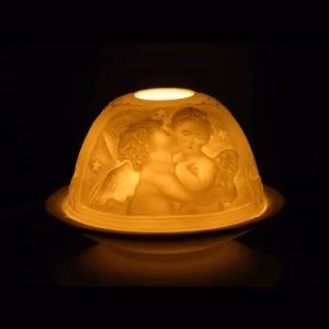 Denna fina genomskinliga porslinsljushållare skapades genom att använda en speciellt fin lera.
