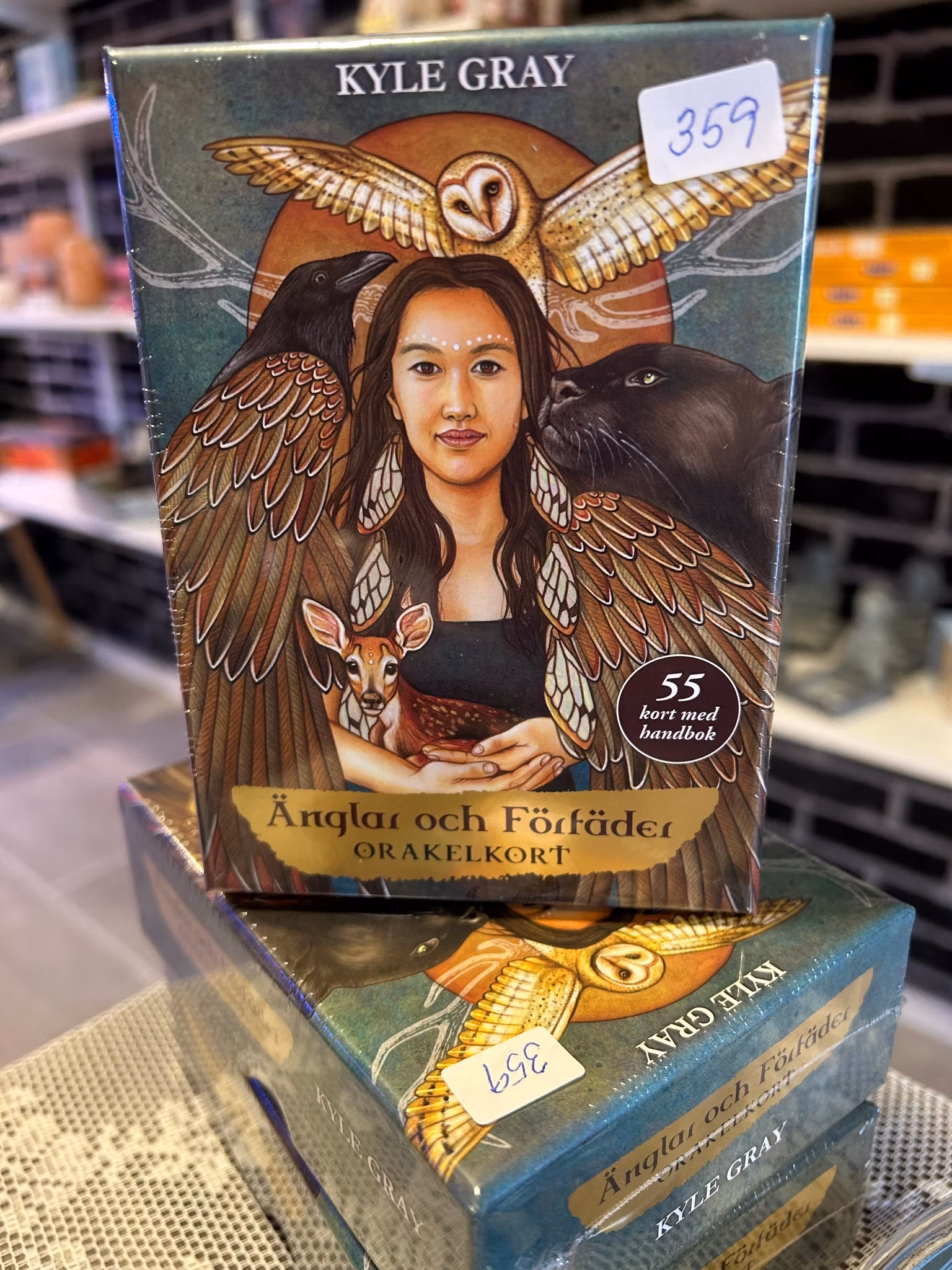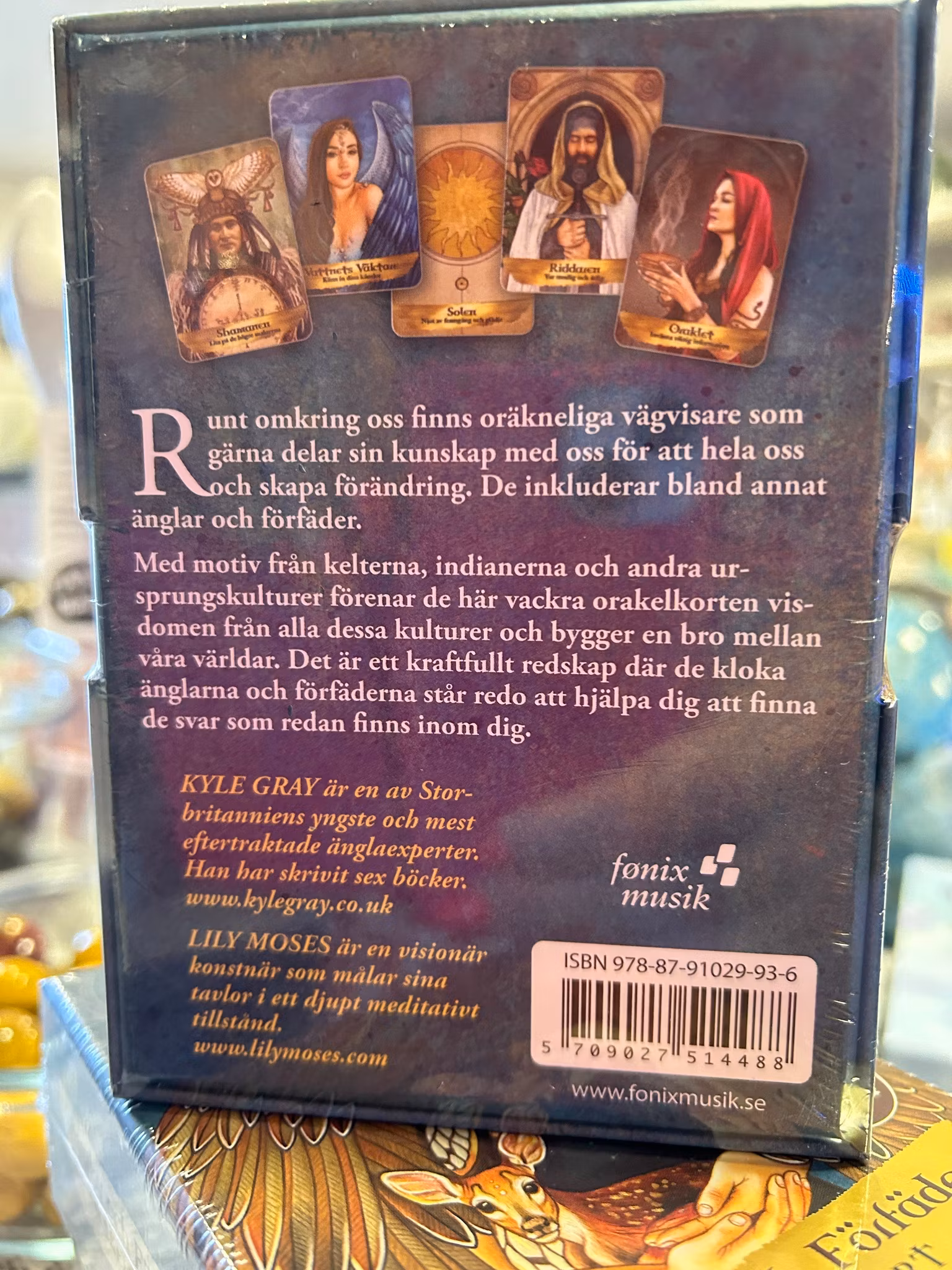 Orakelkorten "Änglar och Förfäder" består av 55 kort. Varje kort erbjuder en möjlighet att komma i kontakt med de högre makterna och söka vägledning från änglar, förfäder och jorden själv.