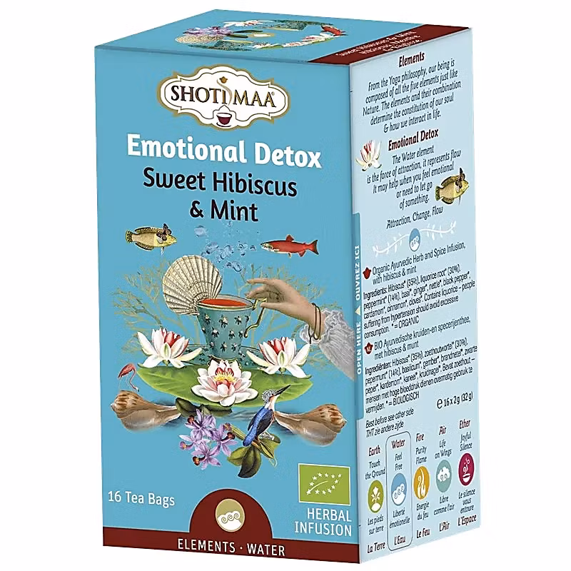 Emotionell detox för stöd och för att balansera vattenelementet. Detta te ger balans till vattenelementet, som relaterar till ditt känslomässiga flöde. Detta är ett bra te att dricka när du känner dig överväldigad av ditt känslomässiga tillstånd eller bara ur flow. Ta några minuter för att njuta av en härlig kopp te och upplev de balanserande effekterna av vår serie teer för elementen.