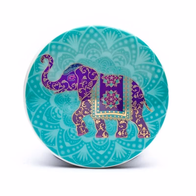 Temugg med lock och infusionsenhet i rostfritt stål, med elefant-design.