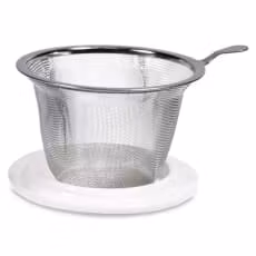 Flower of life temugg med lock och infusionsenhet i rostfritt stål, förpackad i en presentförpackning i kartong.